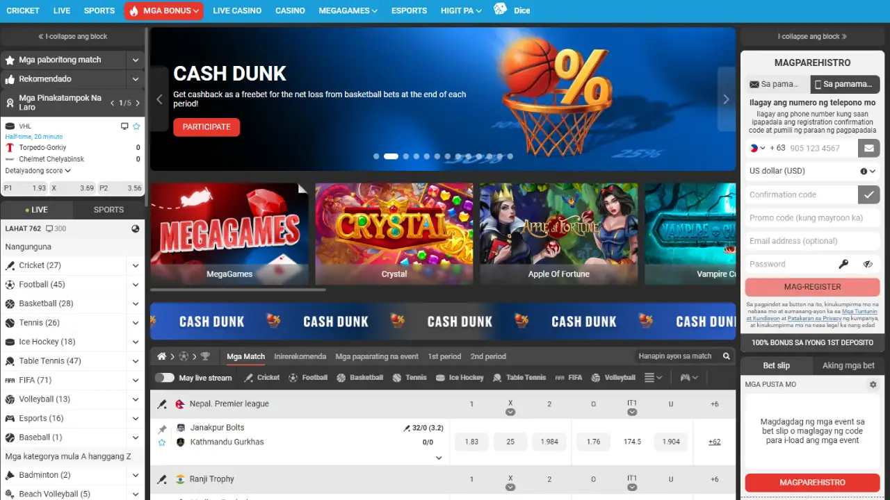 Open the MegaPari website, click on the registration button, and fill out a short form.
